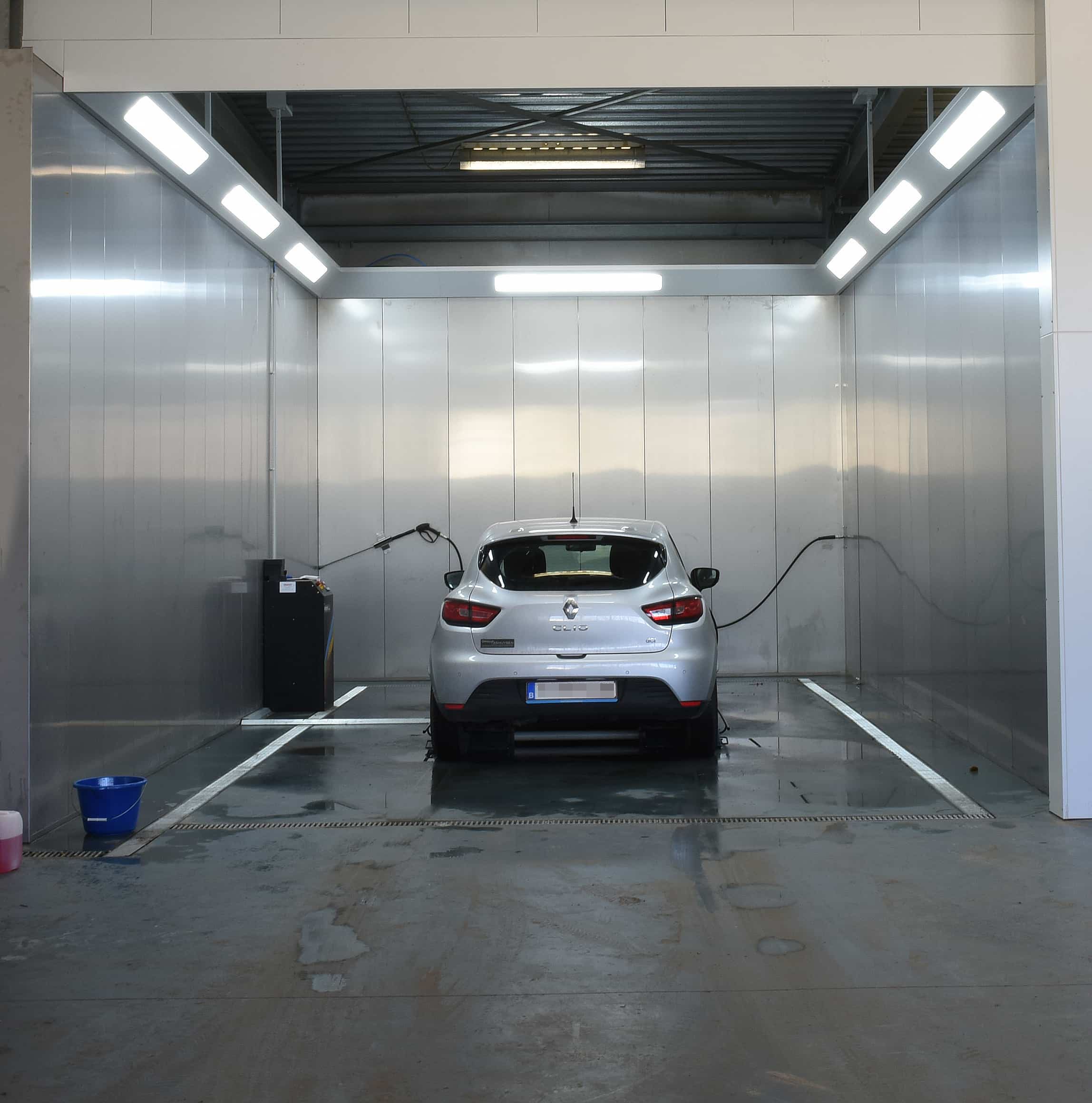 Deze voorbereidingszones, met roestvrijstalen wanden, creƫren de ideale werkplek voor het reinigen van de voertuigen.